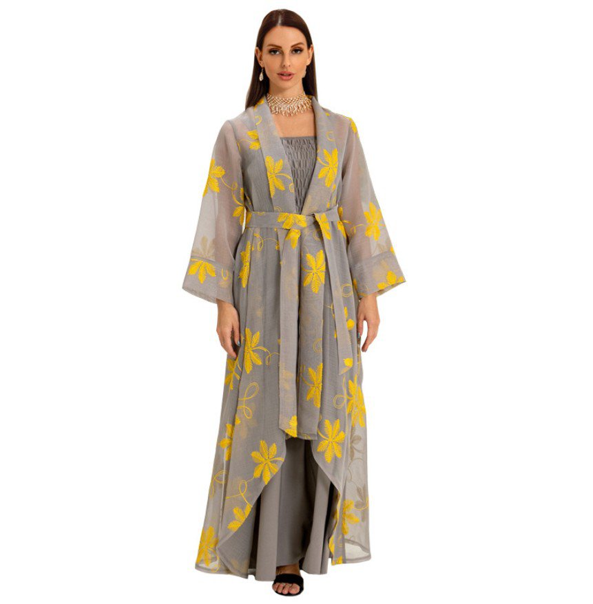 مجموعة فستان حرير فرنسي مزين بنقشة مطرز بديعة