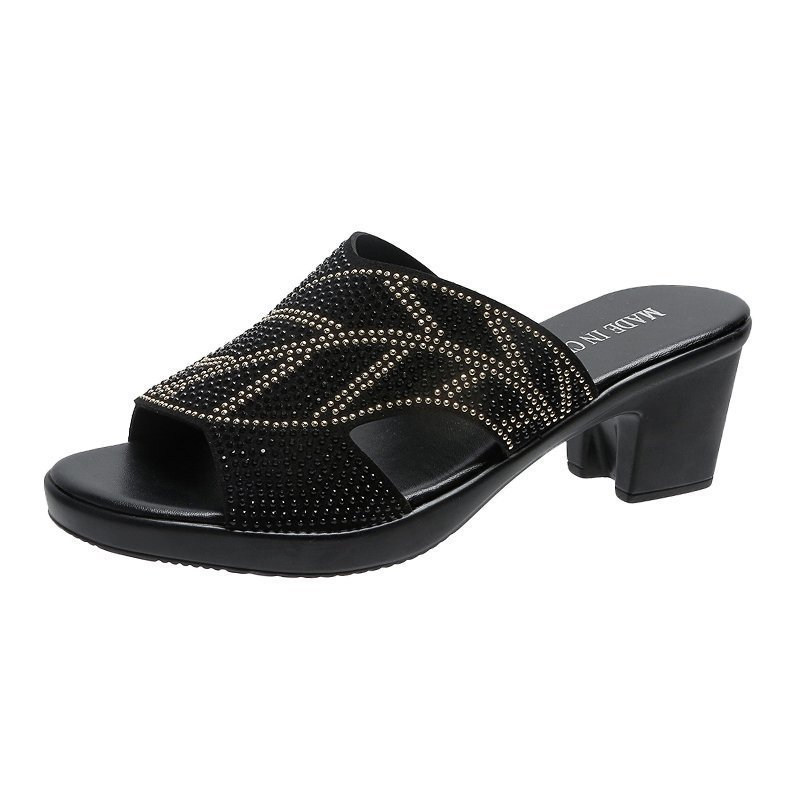 صندل فم السمكة المريح بالكعب السميك للنساء